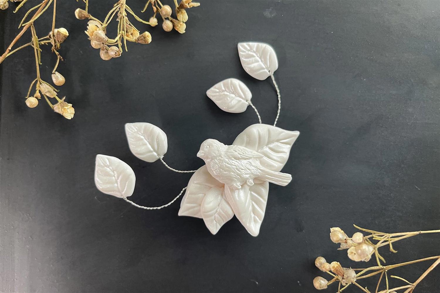 Agrafa de mireasa cu frunzulite si pasare alba este un accesoriu minunat si plin de semnificatie pentru ziua nuntii. Aceasta piesa adauga un strop de natura si romantism, intarind intelesul special al casatoriei si transmitand un mesaj de iubire si armonie intre miri.