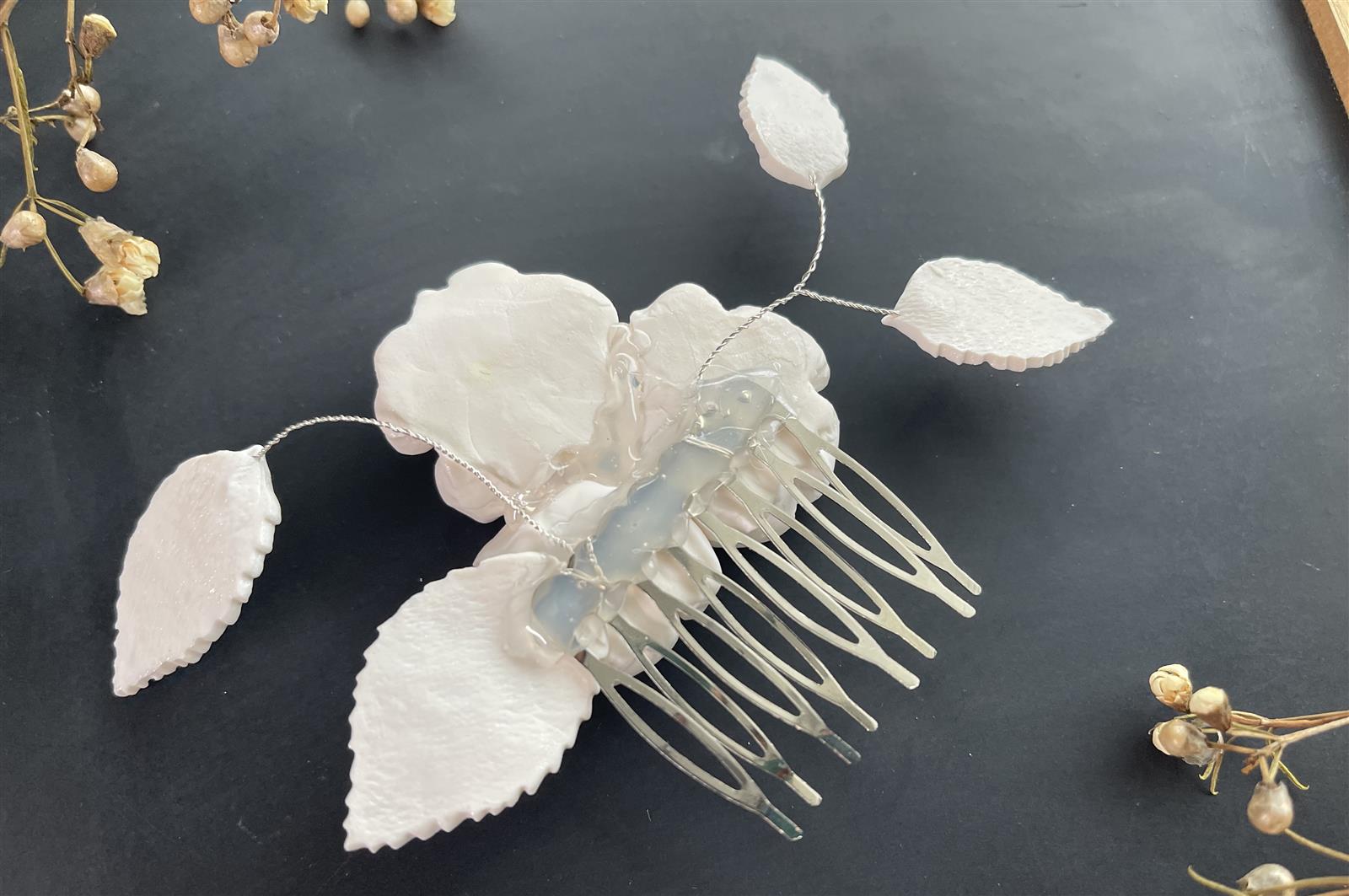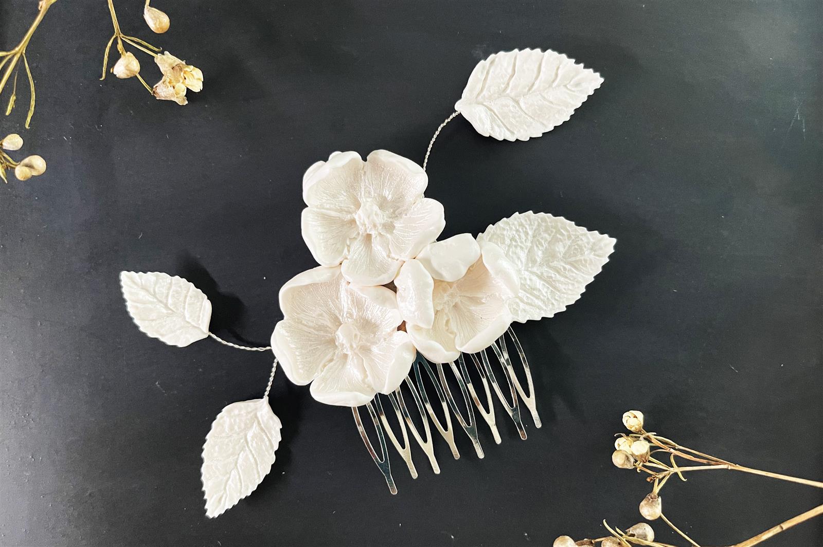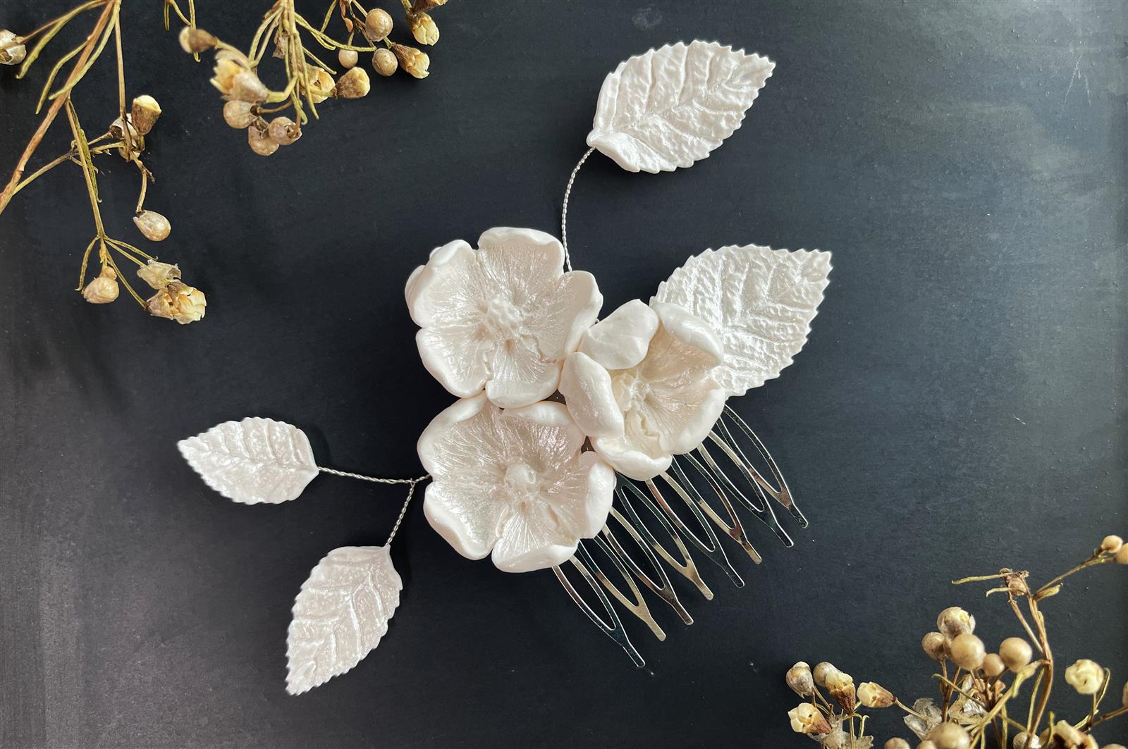 Piepteni cu flori: Pot fi creati din materiale precum matase, satin sau dantela si au forma de flori, potrivindu-se in special coafurilor romantice sau boeme.