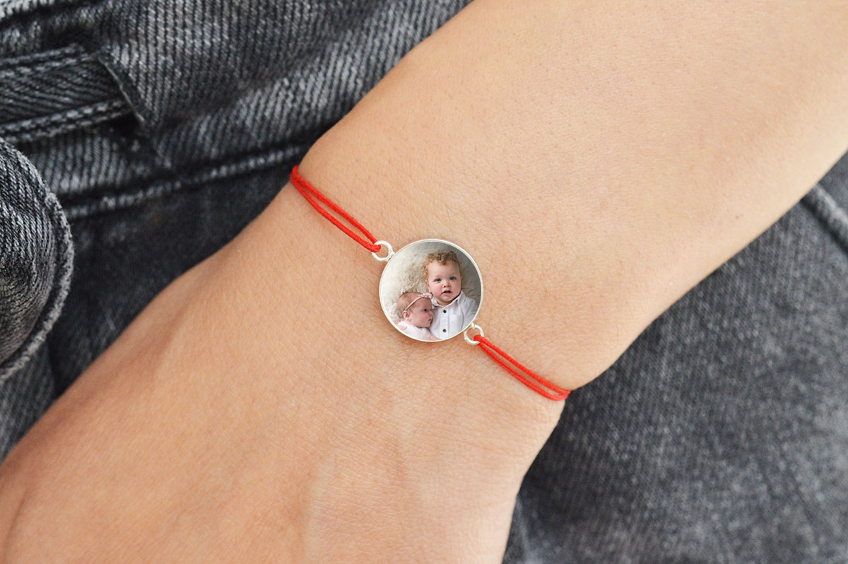 Bratara snur platou din argint 925 cu poza sora si frate