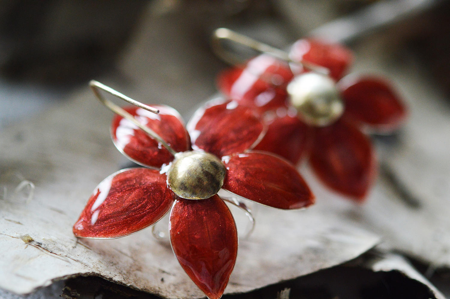 Fiecare detaliu din aceasta pereche de cercei este realizat de mana. Inclusiv sudura realizata la baza din argint care sustine floarea.