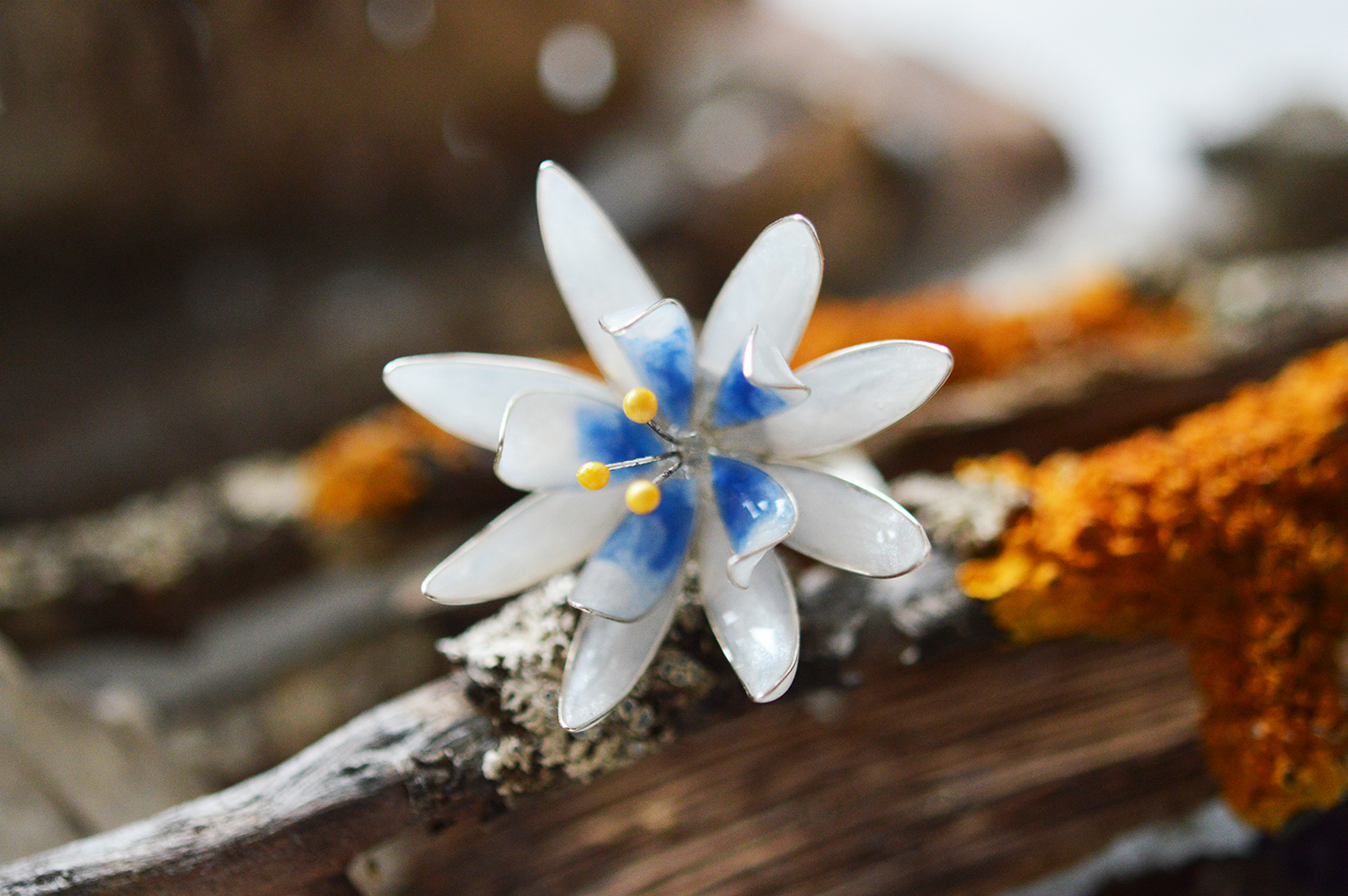 Inelul din argint Blue Edelweiss este unicat si reglabil.