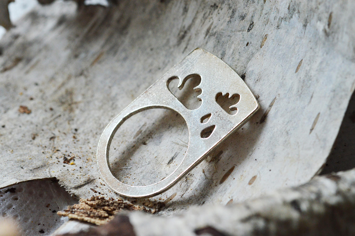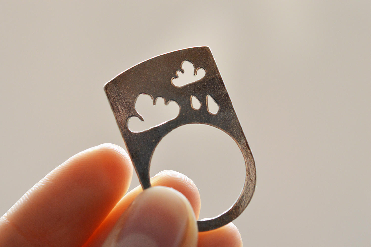 Inelul din argint Rainy Skies are un traforaj deosebit cu nori si ploaie pe partea superioara a acestuia. Inelul este realizat din argint 925 si nu este reglabil. Usoare urme de oxidare pot fi surprinse in anumite fotografii ale produsului. Acestea ofera un plus de originalitate inelului.