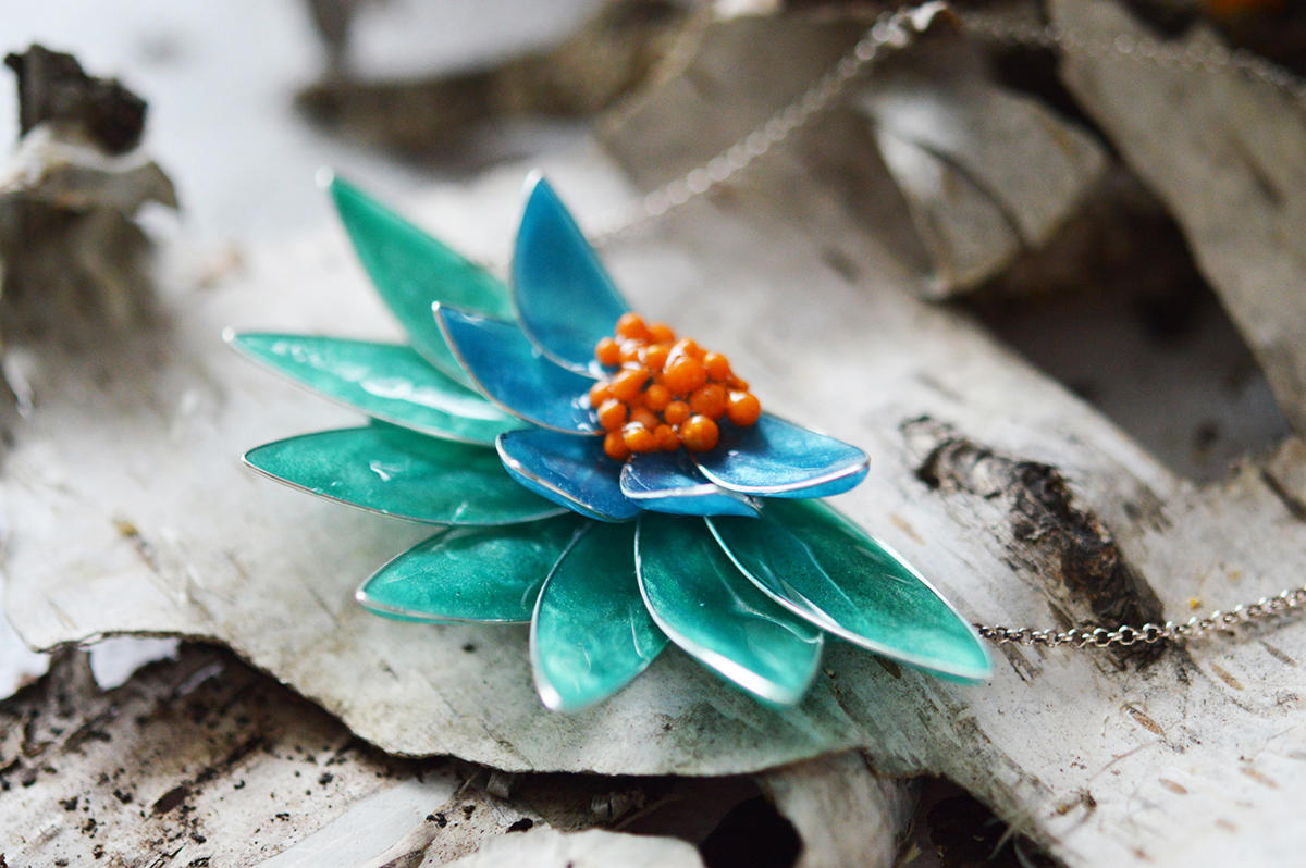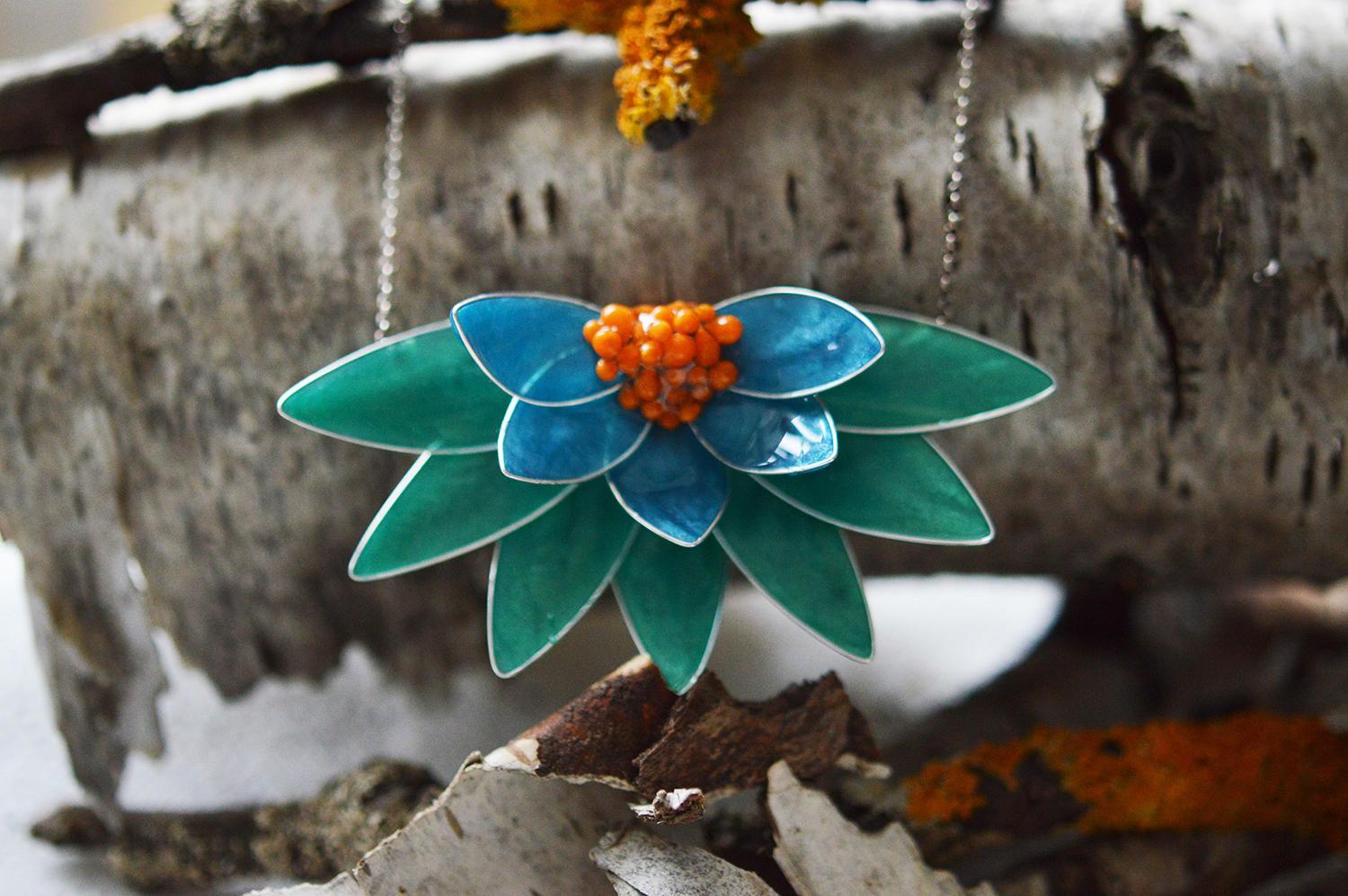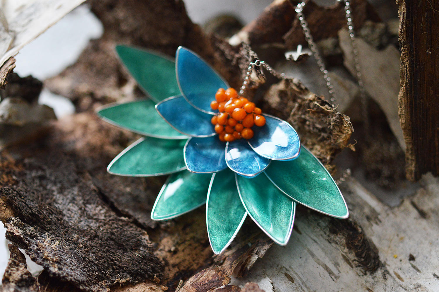 Pandantivul este realizat din argint, rasina, pigmenti.