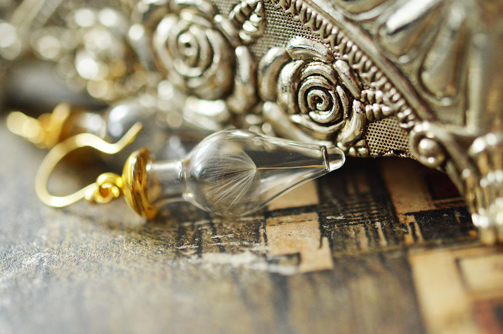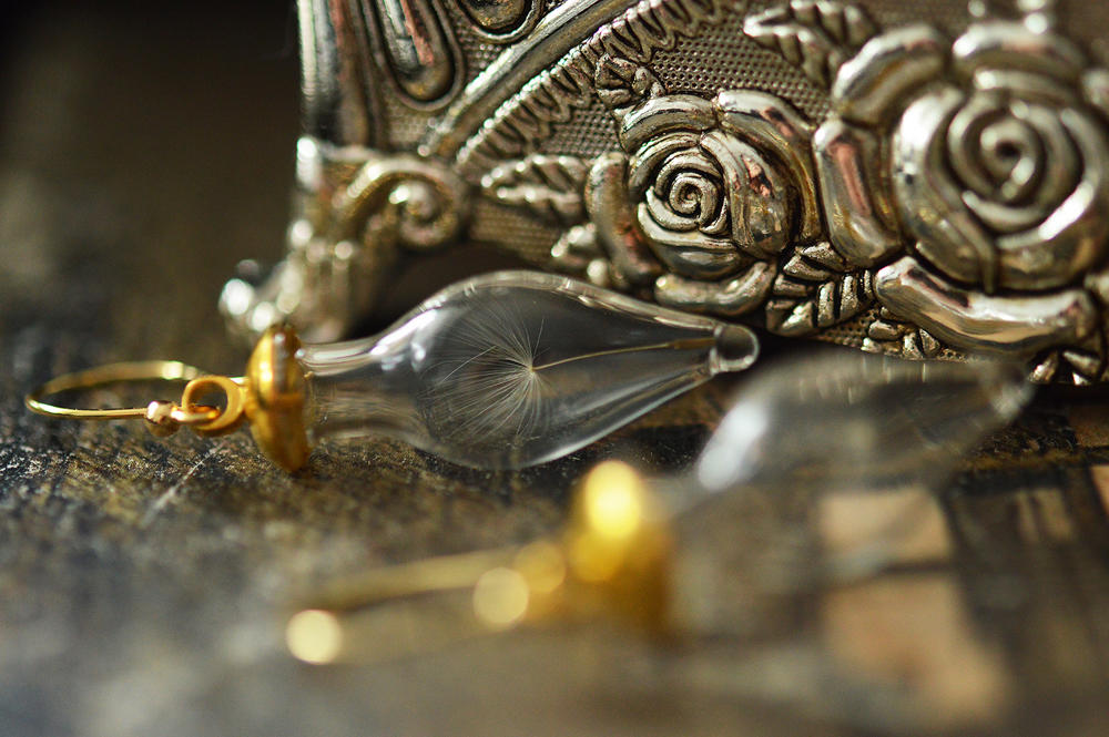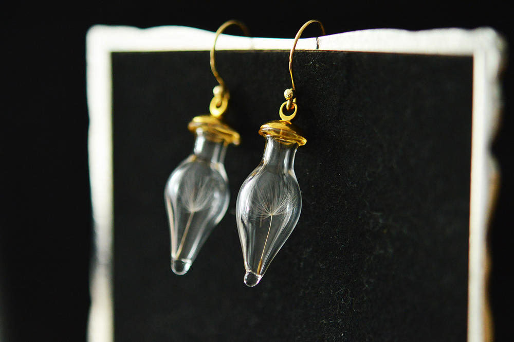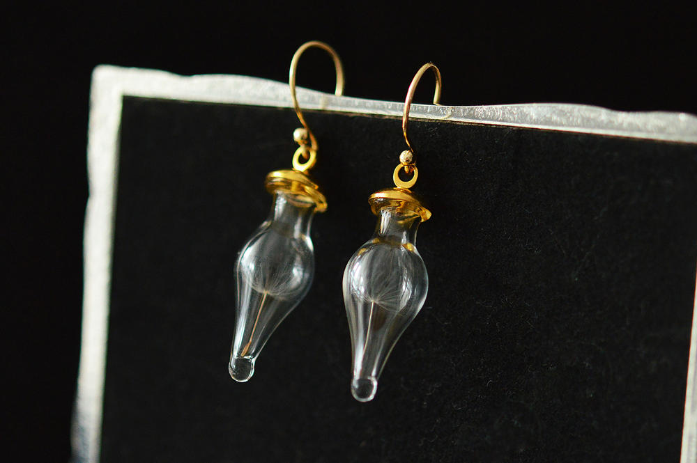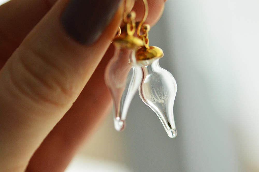 Puful din interior este natural și sticla lucrată manual, prin urmare, cei doi cercei nu sunt identici. Doar sistemele de prindere sunt placate cu aur.