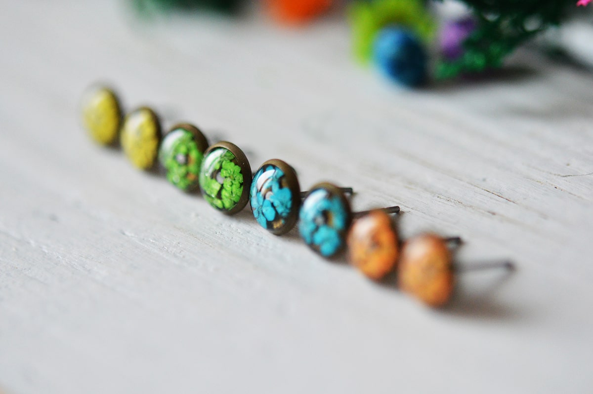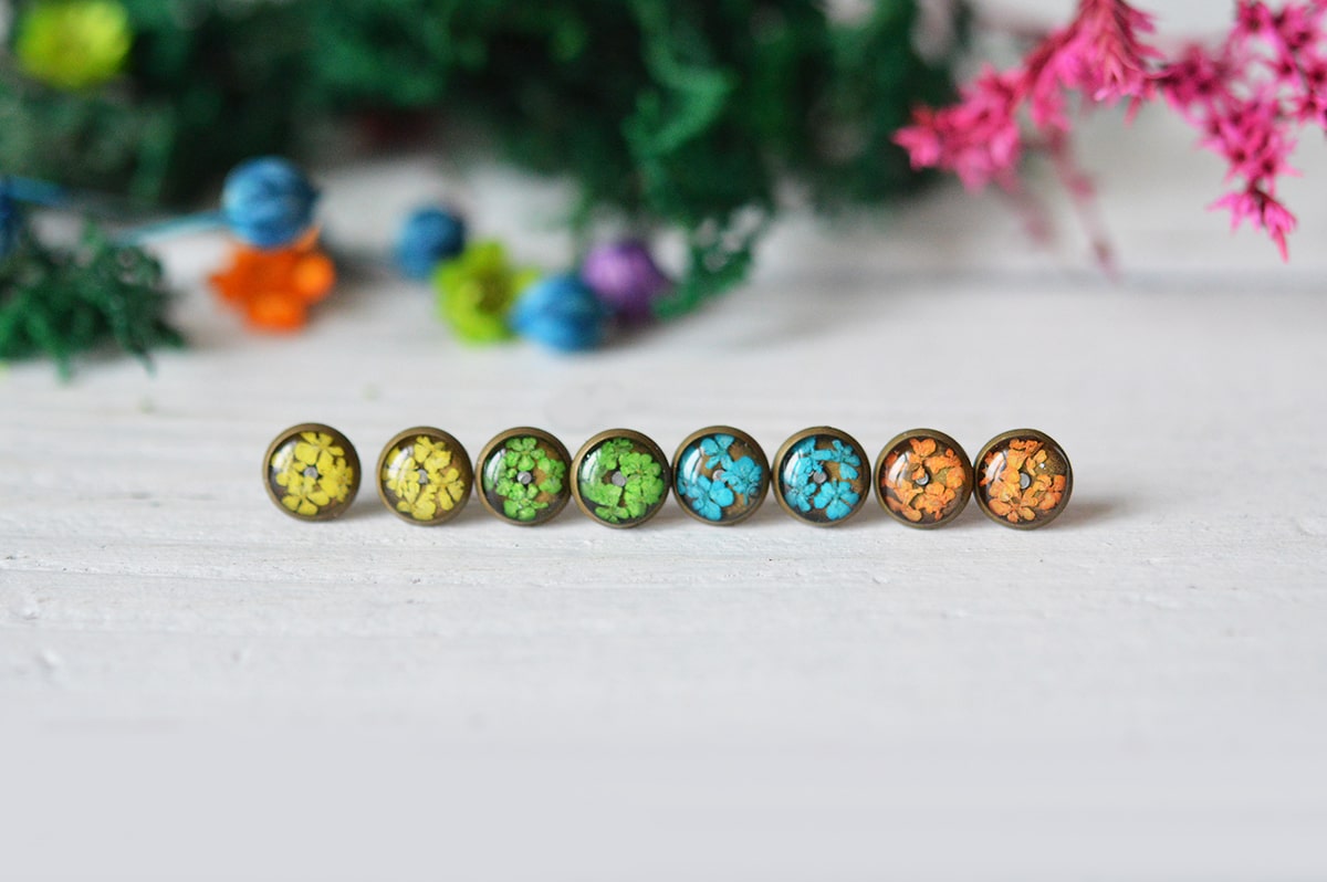 Cuvinte cheie: four seasons, cercei colorati, culori, flori naturale, cercei handmade, cercei bronz