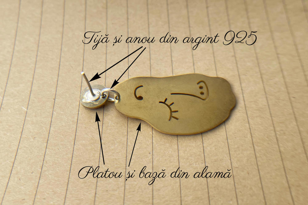 Oxidarea cercelului este un proces natural. Atat alama cat si argintul va capata o nuanta patinata in timp, in functie de factorii de mediu.
