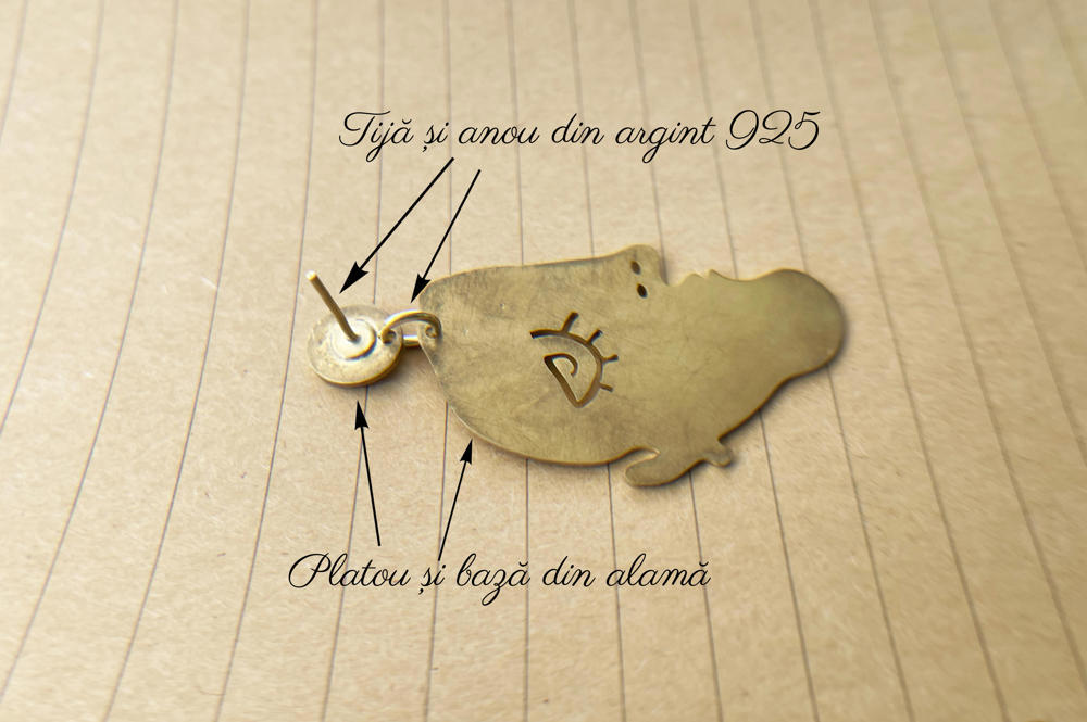 Oxidarea cercelului este un proces natural; atât alama, cât și argintul vor căpăta o nuanță patinată în timp, influențată de factorii de mediu.