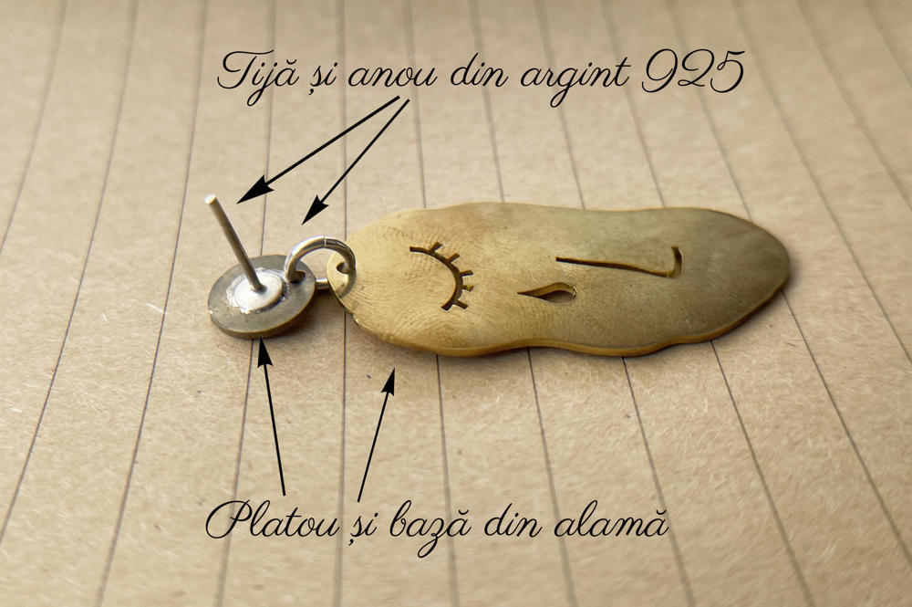 Oxidarea cercelului este un proces natural. Atat alama cat si argintul va capata o nuanta patinata in timp, in functie de factorii de mediu.