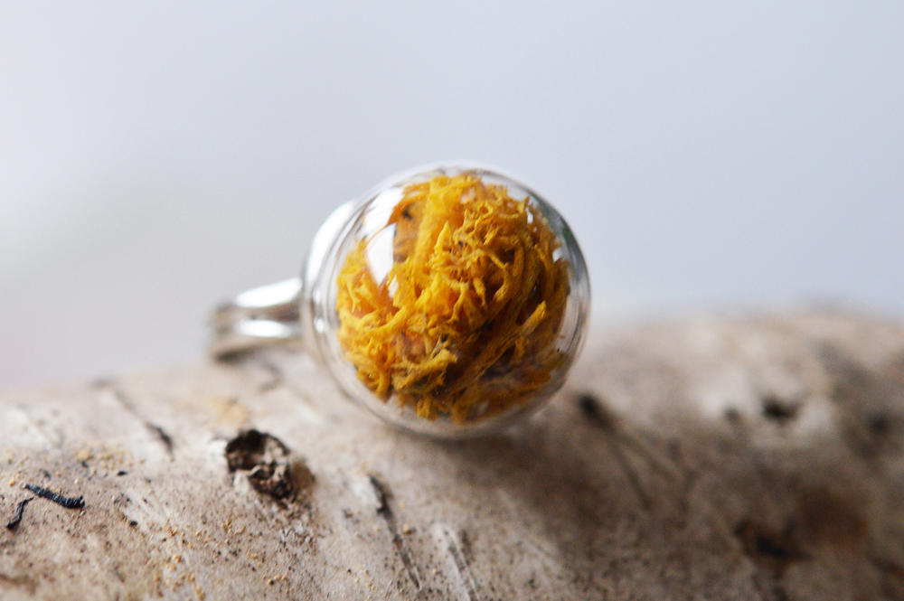 Globul din sticla contine muschi natural de culoare galben - mustar.