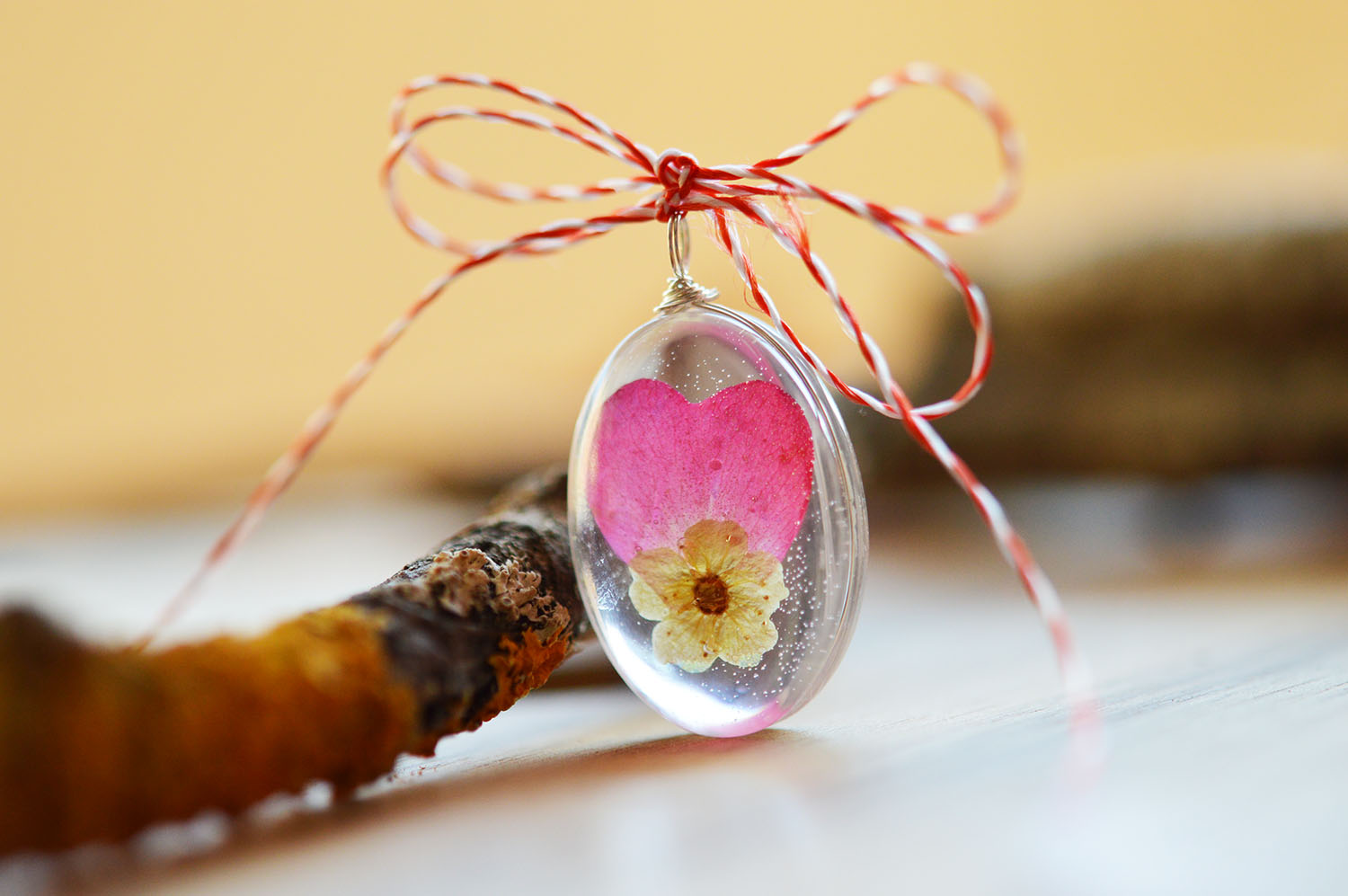 Este realizat manual cu floare naturala, petala de trandafir si argint 925.