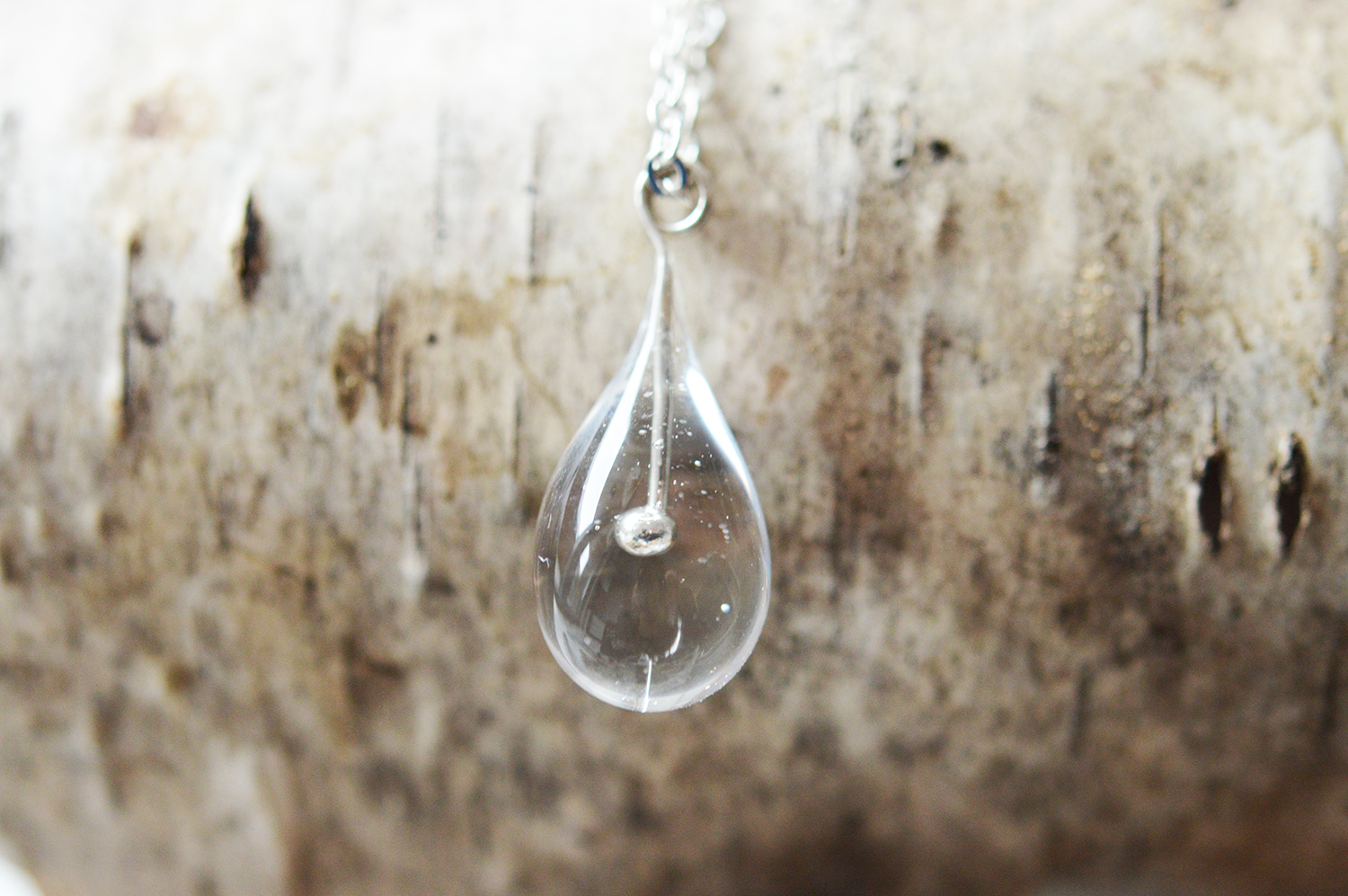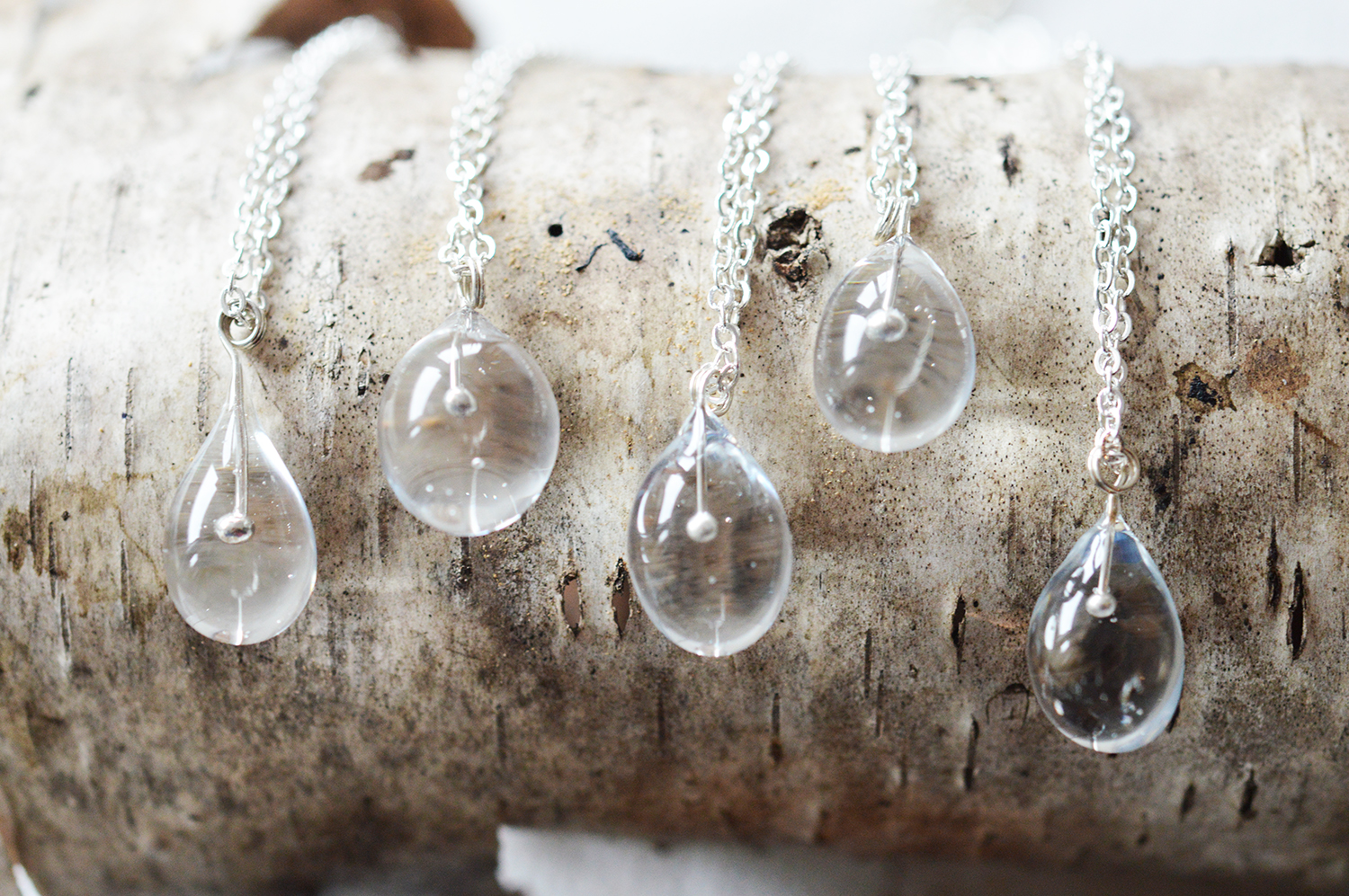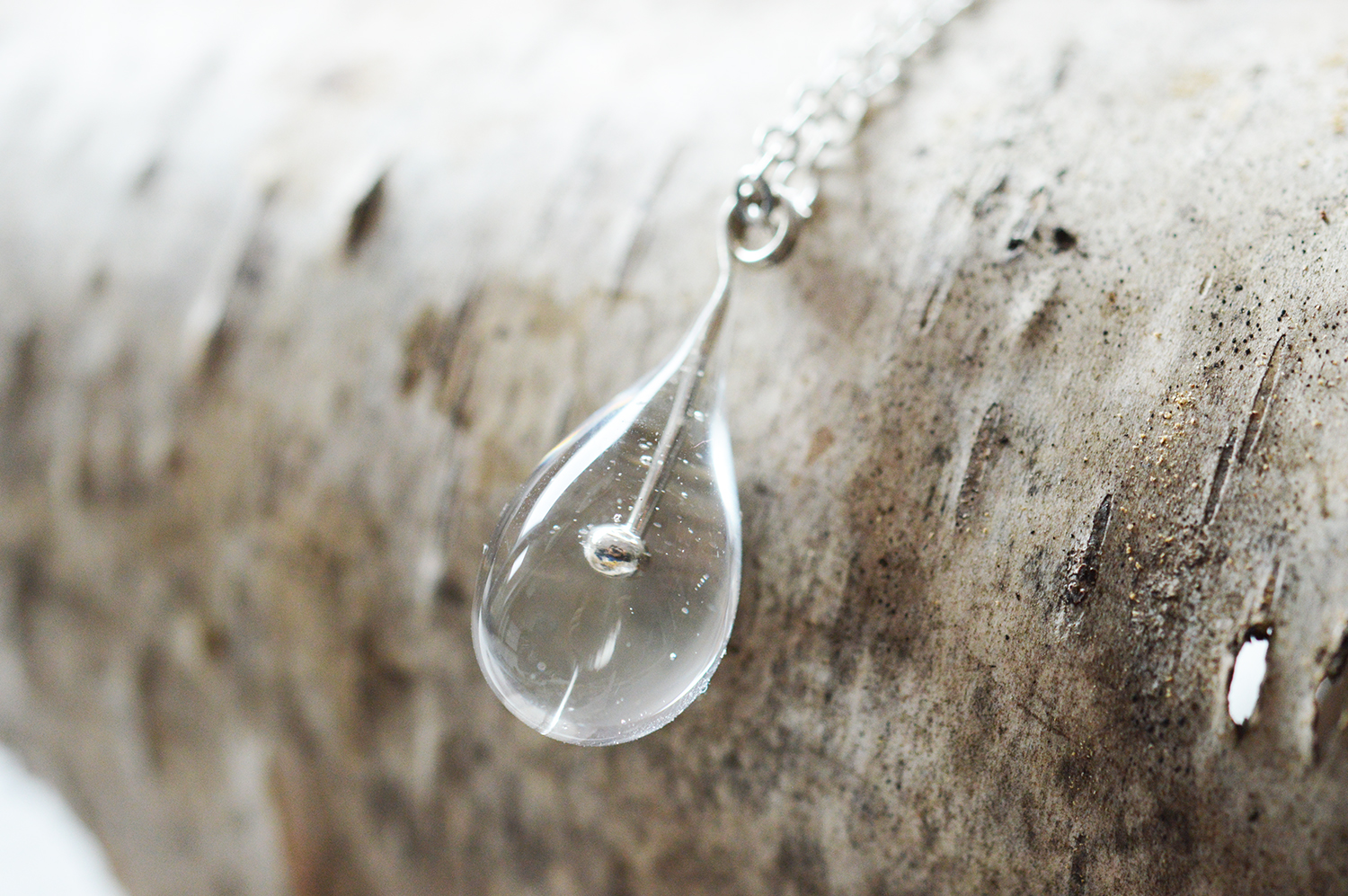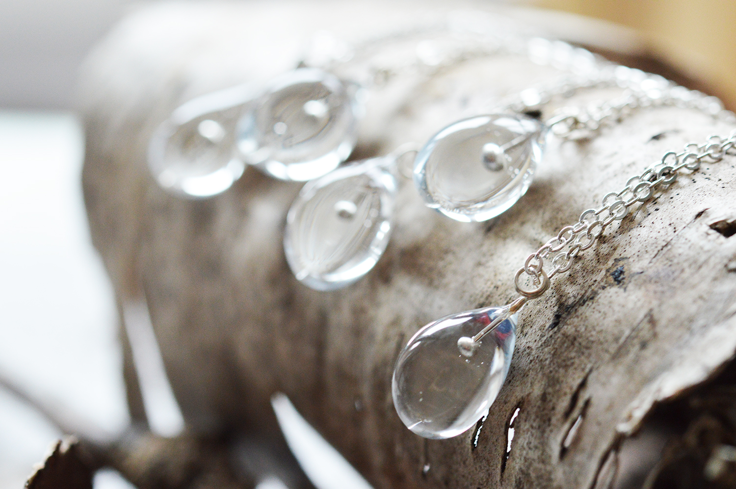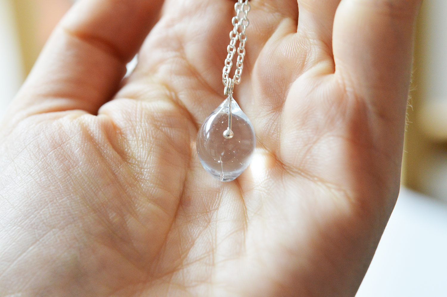 Pandantivul Drops of Heaven este realizat manual cu rasina si metal placat cu argint.