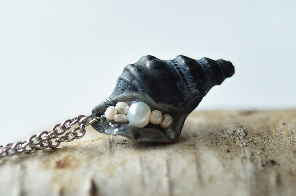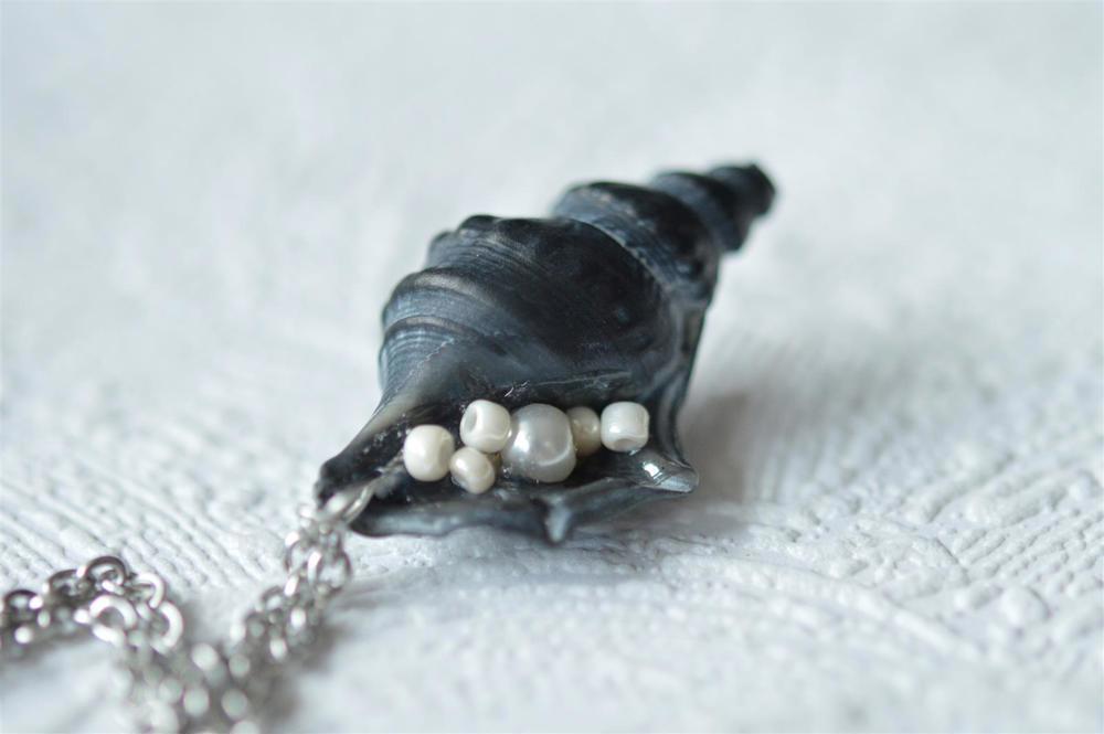 Interiorul scoicii a fost decorat cu margelute perlate.