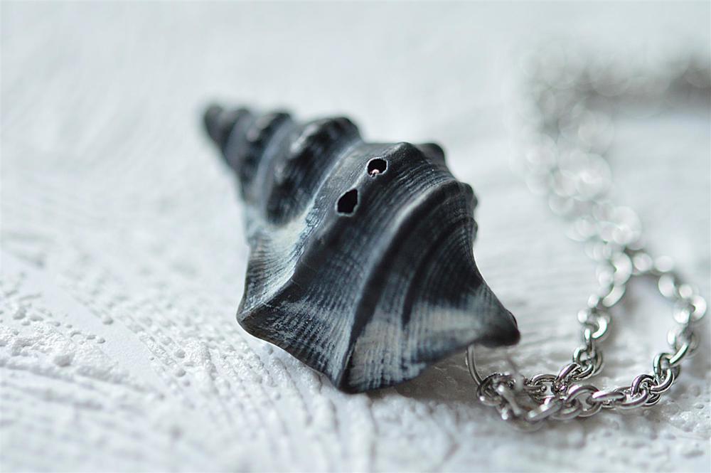 Pandantivul este realizat din scoica naturala, de culoare negru-cenusiu.