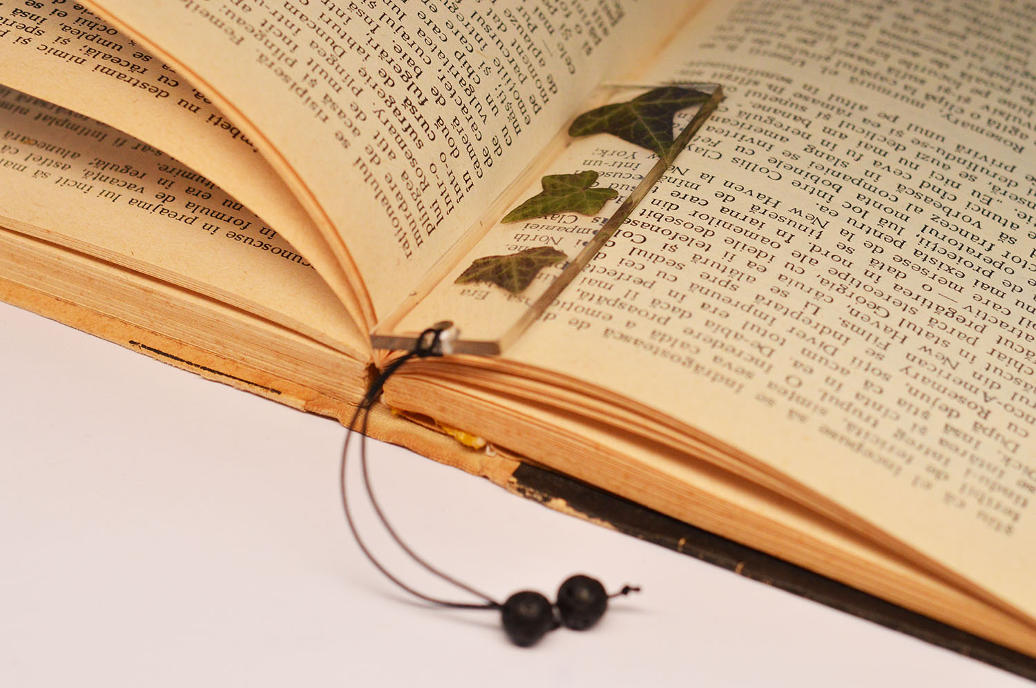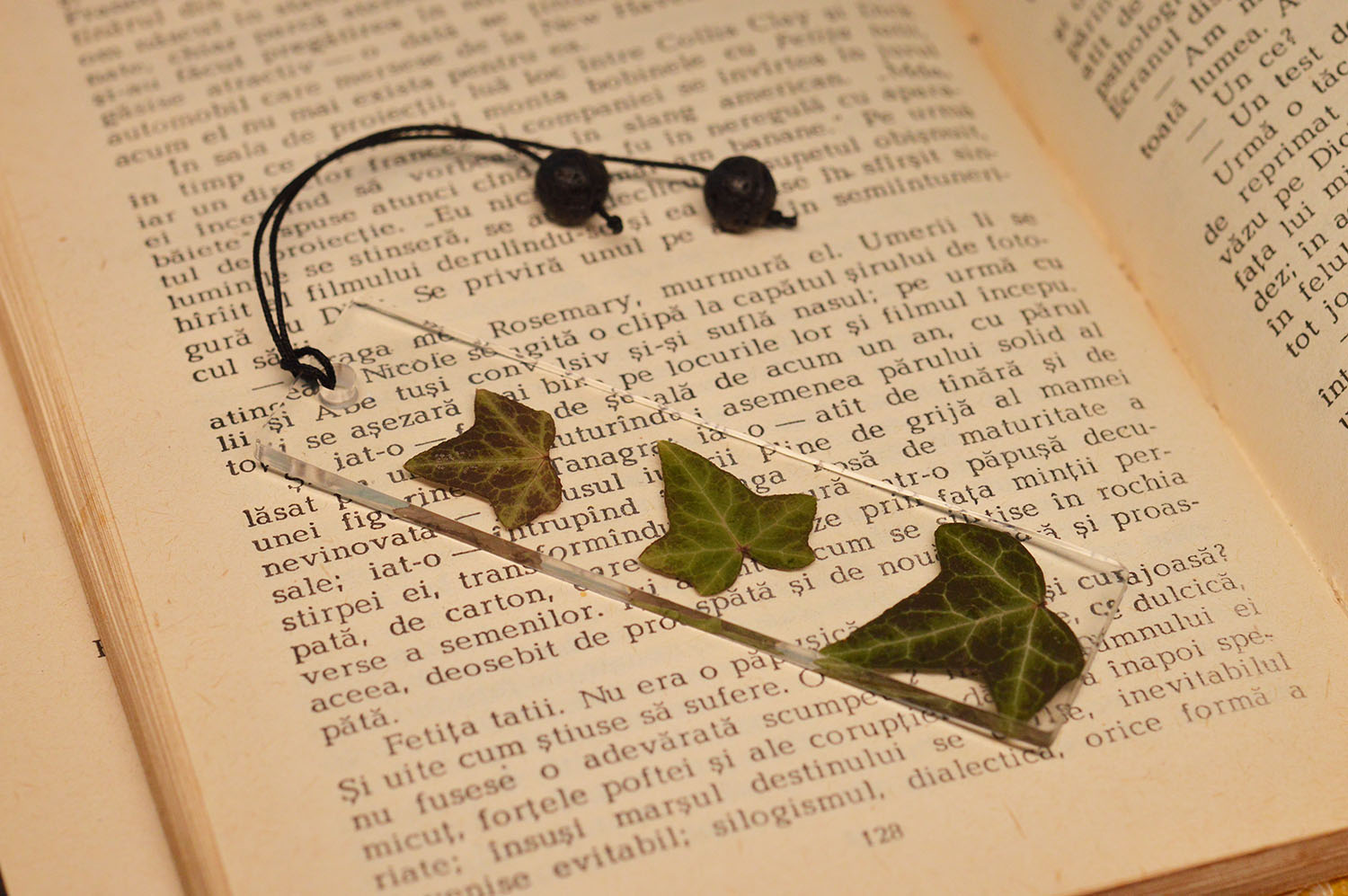 Semnul de carte este insotit de doua margelute de lava printr-un snur negru, menit sa iasa in afara cartii cand acesta este folosit.