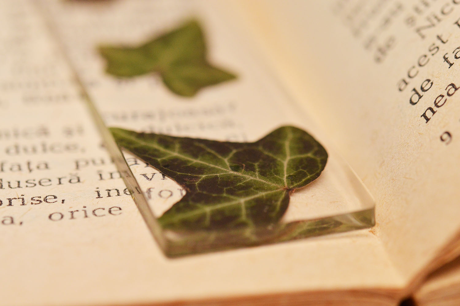 Fiecare frunza este diferita. Fiecare semn de carte va fi unicat. Unele frunze sunt mai deschise la culoare, altele mai inchise. Formele acestora vor fi mereu diferite. Este posibil ca la turnarea rasinii sa ramana mici bule de aer.